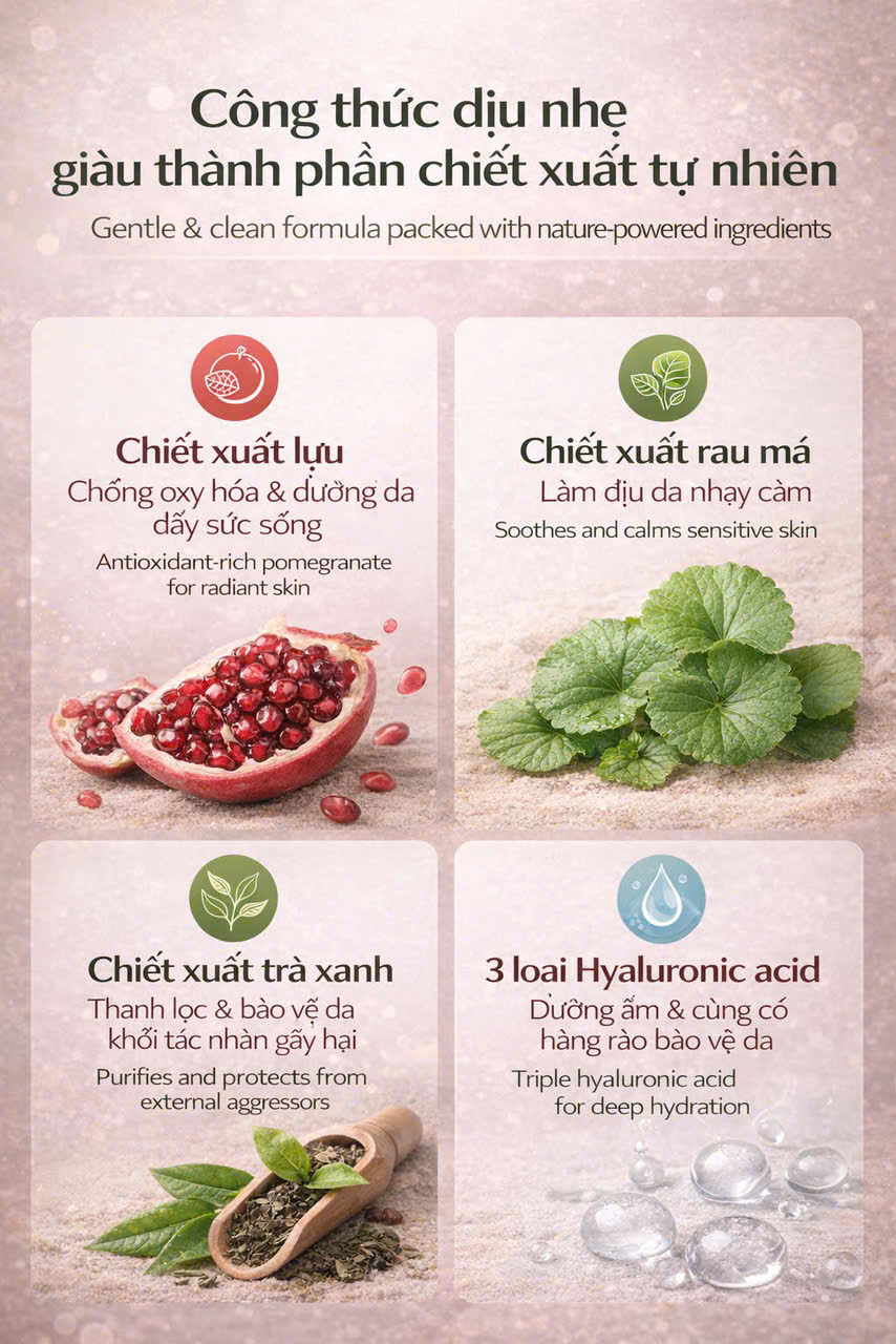 Loại da phù hợp: Da thường, da hỗn hợp, da khô